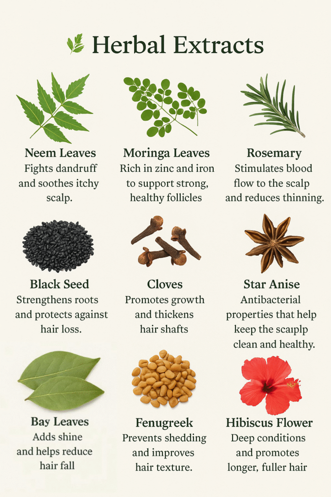 Infused with potent herbs known for their centuries-old role in natural hair care.