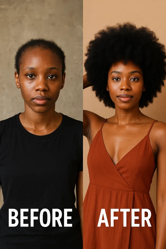 "I was skeptical at first, but this oil brought my edges back in just a few weeks. Even my stylist noticed the difference!" — Chiamaka, Abuja